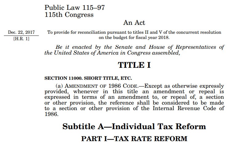 P.L. 115-97, An Act to provide for reconciliation pursuant to titles II and V of...